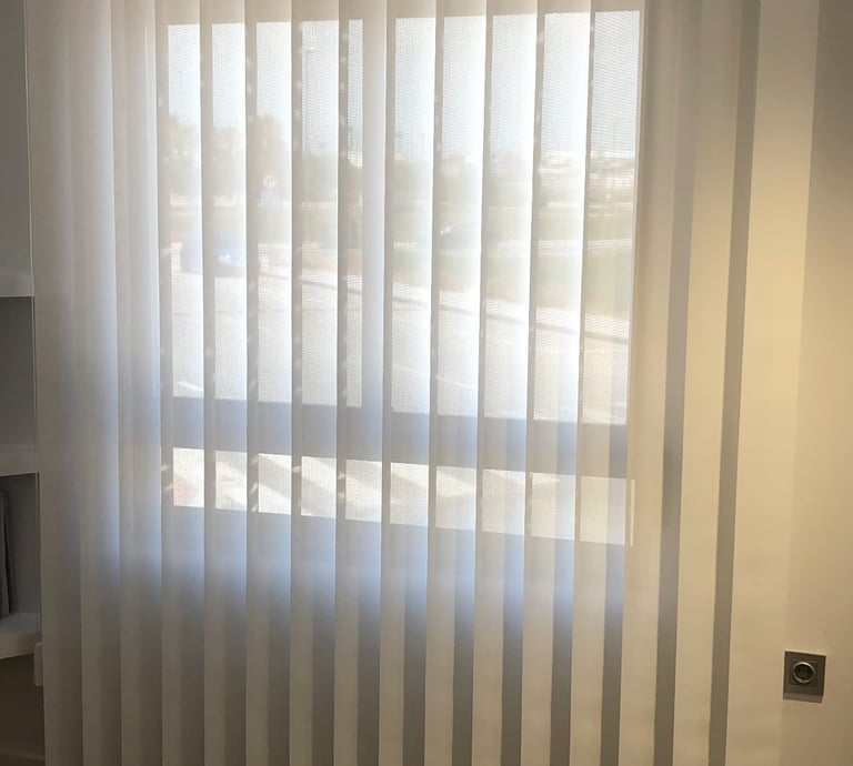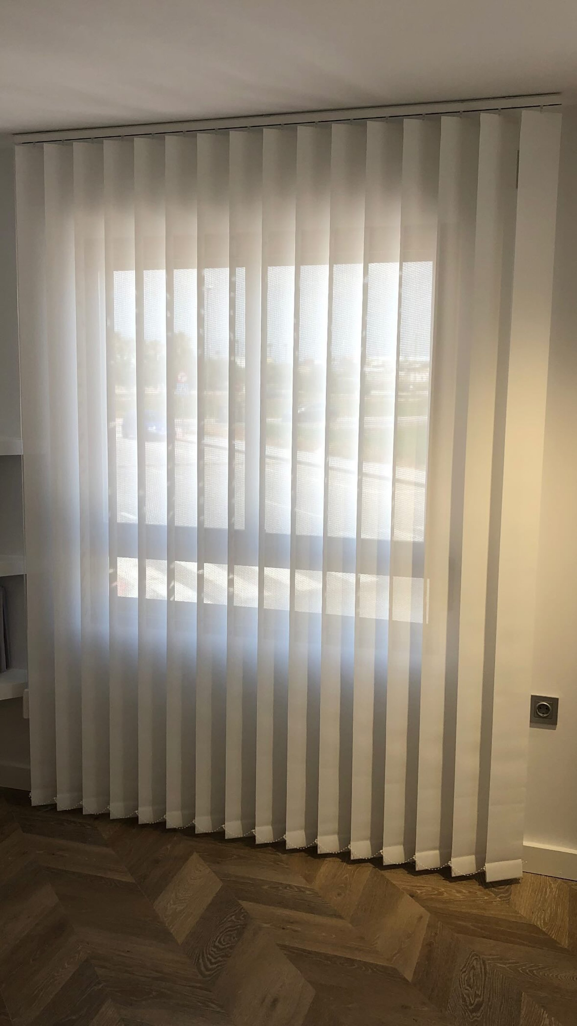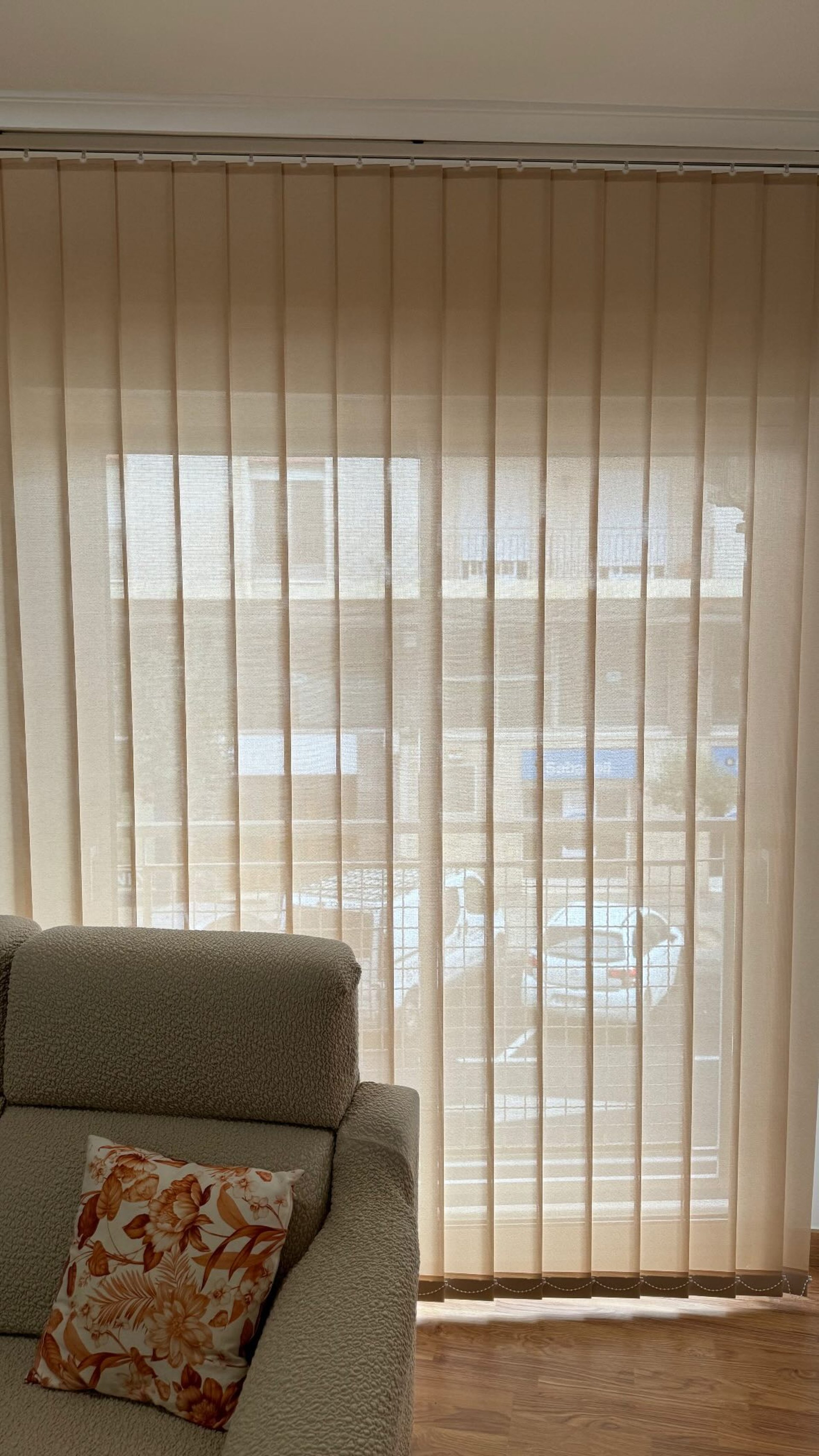 Las cortinas verticales ofrecen un control preciso de la luz y un estilo limpio y contemporáneo. Son perfectas para grandes ventanales, oficinas y espacios donde se busca funcionalidad, elegancia y una regulación suave de la iluminación.